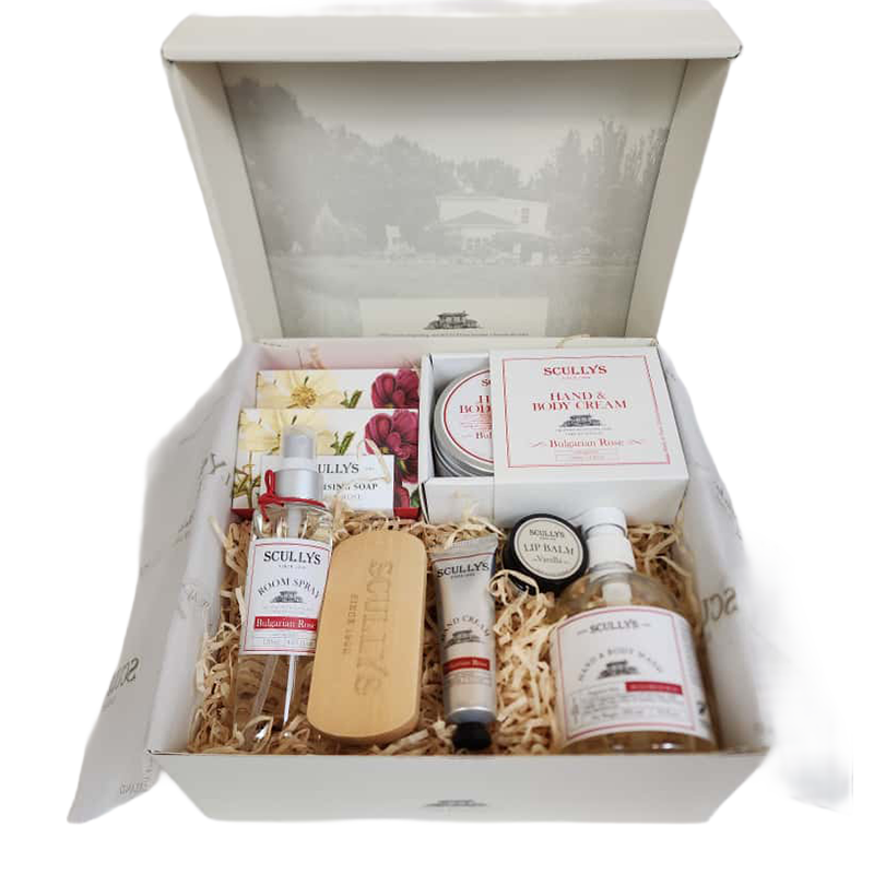 Experience the enchanting essence of roses with the Bulgarian Rose Infusion Series gift box. This luxurious collection includes a rich hand and body cream for deep hydration, a gentle hand wash paired with a stylish brush, a revitalising shower and bath wash for a refreshing cleanse, moisturising soaps with floral elegance, and a nourishing lip balm for soft, supple lips.
